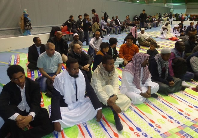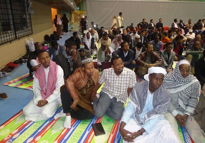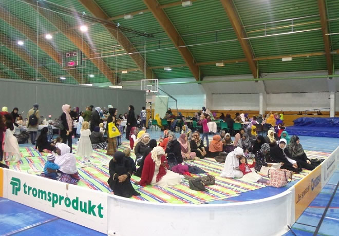Khamiis, September 24, 2015 (HOL) — Iyadoo maanta ay tahay Maalintii 1-aad ee Ciidul-Adha ayaa Muslimiinta ku nool Magaalada Tromsø oo Soomaalida Qayb ka tahay waxa ay ku dukudeen salaadii Ciidul-Adaxa Gudaha Tromso Hallen, waxaana isugu yimid hoolkaas boqolaal muslimiin ah oo ku kala nool gudaha iyo daafaha magaalada.