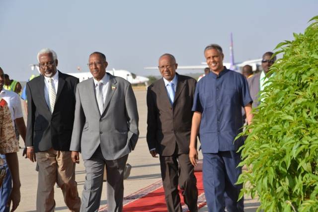 Madaxweynaha Waxaa Safarkiisa ku wehliyay Marwadiisa, Aamina Sh. Maxamuud Jirde, Wasiirka madaxtooyadda Xirsi Cali X. Xasan iyo Xoghayaha gaarka ah ee Madaxweynaha Md. Cali Axmed Cali.