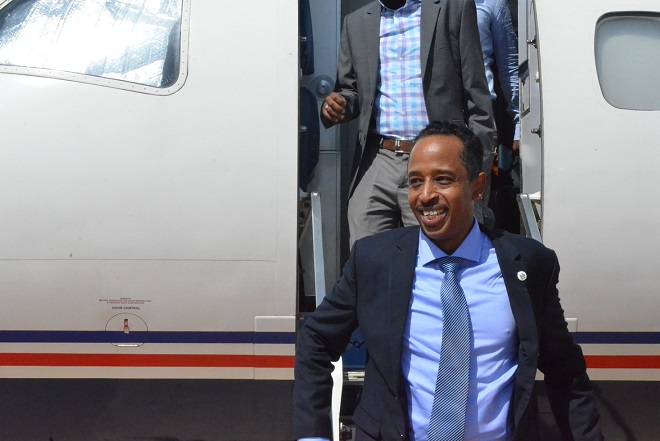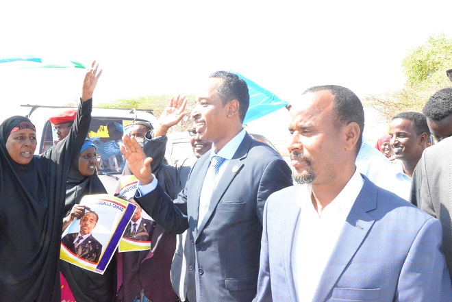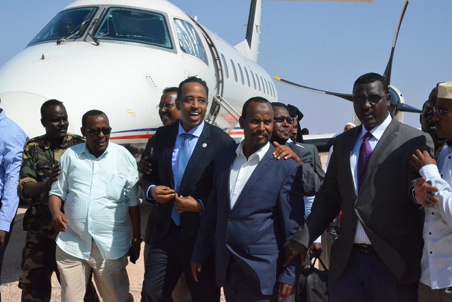 Wafdiga ayaa Waxaa Garoonka Diyaaradaha Gaalkacyo kusoo dhaweeyey mas'uuliyiin uu ka mid ahaa Guddoomiyaha Baarlamaanka Maammulka Puntland, ku xigeenkiisa, Wasiirro iyo Xildhibaanno ka tirsan maamulka Puntland, Guddoomiyaha Gobolka Mudug, Odayada Dhaqanka, Haween, Dhallinyaro iyo Qaybaha Shacabka Gaalkacyo; kuwaas oo Xubanaha Wafdigu ay mid mid u Gacan Qaadeen.