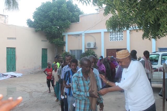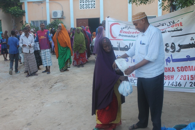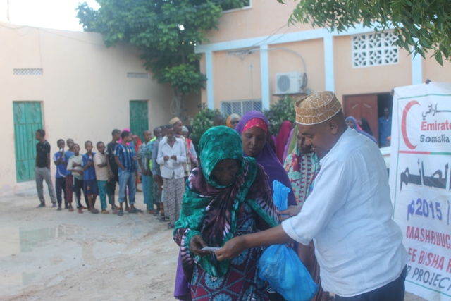 Arbaco, Luuliyo 01, 2015 (HOL) — Hay’adda bisha cas ee dalka Imaaraadka Carabta ayaa maanta deeq afurin ah oo ka kooban raashin bisil oo ay ugu Talo-gashay Qoysas badan oo ku nool degmooyinka Gobolka Banaadir ka Qaybisay degmada Shangaani, deeqdaas oo ay ka faa’iideysteen in ka badan 150-qoys., waxaana goobta lagu Qaybinayay deeqdan afurka ah goob-joog ka ahaa, Cali Cabdul Daacad oo ah sarkaal hay’ada Bisha Cas ee Imaaraadku u wakiilatay Qaybtan deeqdan iyo guddoomiyaha Shangaani, Axmed Xasan Yalaxow.