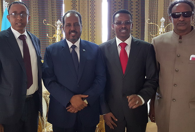 Khamiis, Luuliyo 16, 2015 (HOL) — Guddoomiyaha maamulka gobolka Hiiraan C/fataax Xasan Afrax oo ay Wehliyaan Xubnno isugu jiray Siyaasiyiin iyo Waxgarad kasoo jeeda gobolka, ayaa kulan kula qaatay Xarunta Ioobiya ee Addis Ababa madaxweynaha Somalia Xasan Sheekh Maxamuud oo halkaa u tagay ka qeyb-galka shirkii  maal-gashiga caalamiga ah.