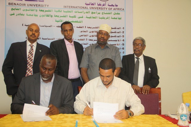 Axad, Abriil 10, 2016 (HOL) — Jaamacadda Banaadir ee dalka Somalia iyo International University of Africa oo Xarunteedu tahay Dalka Suudaan, ayaa kala Saxiixday Heshiis is-kaashi oo dhinaca waxbarashada ah, kadib munaasabad lagu qabtay magaalada Muqdisho.