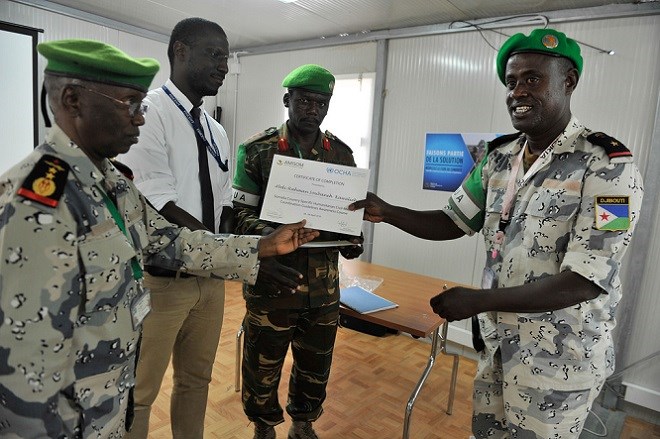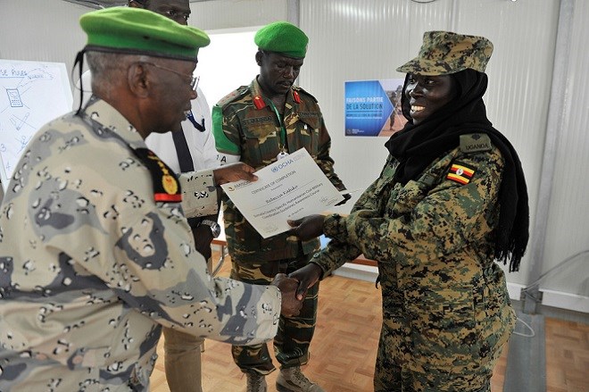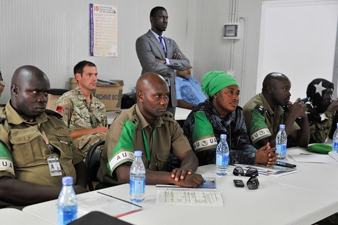 Axad, Abriil 10, 2016 (HOL) — Qaar ka mid ah saraakiisha ciidamada Midowga Afrika ee Somalia [AMISOM], ayaa Muqdisho lagu siiyay Tababbar ku Saabsan sidii ay ula shaqeyn lahaayeen hay’adaha Samafalka ah ee Somalia ka hawl-gala si gargaarada bani’aadamnimo loo gaarsiiyo shacabka u baahan.