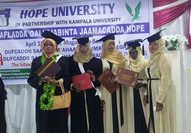 Si kastaba ha ahaatee, Ma ahan markii u horreysay oo Jaamacada Hope oo Xarumo ku leh, Magaalooyinka Muqdisho, Garoowe iyo Hargeysa ay ka qalin-jabiyaan arday dhameystay Heerarka kala duwan ee Waxbarashada Jaamacadeed.