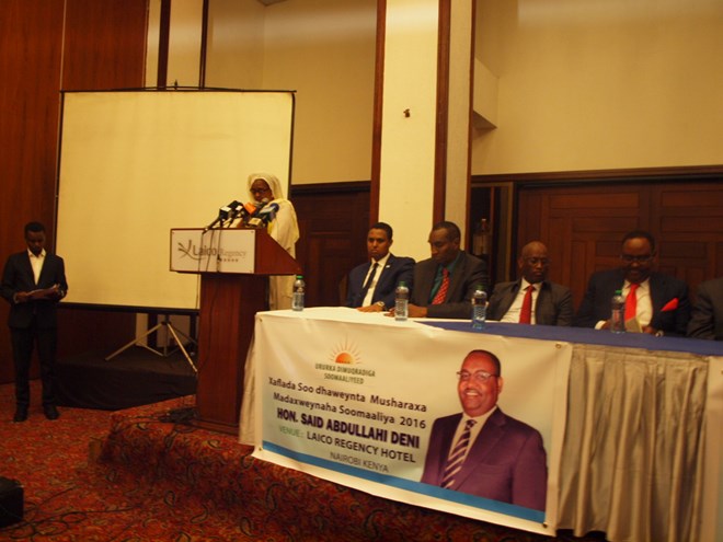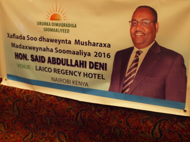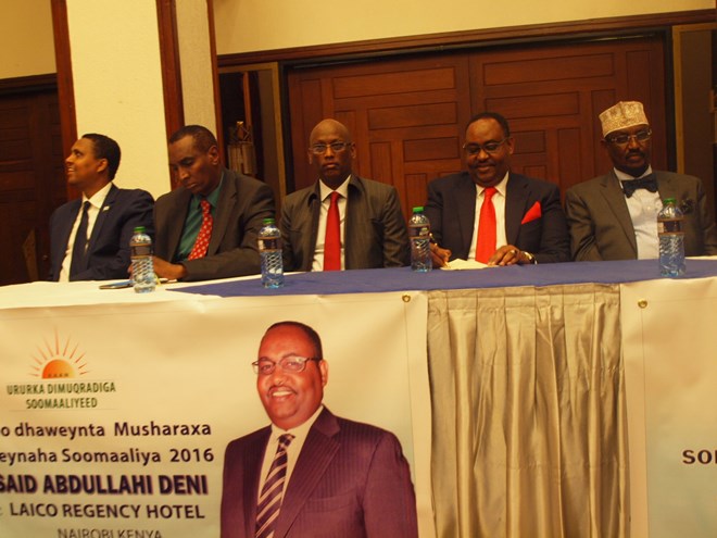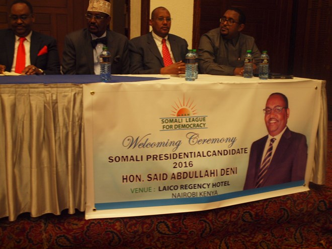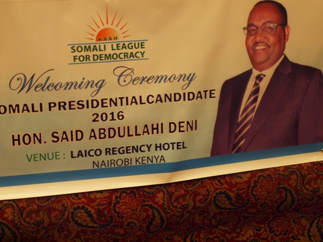 Khamiis, Abriil 14, 2016 (HOL)-Xaflad soo dhaweyn ah ayaa waxaa magaalada Nairobi gaar ahaan Hotelka Laico Regency loogu qabtay murashaxa xilka madaxweynenimada ee doorashada Soomaaliya ee 2016, Mr. Saciid Cabdullaahi Deni.