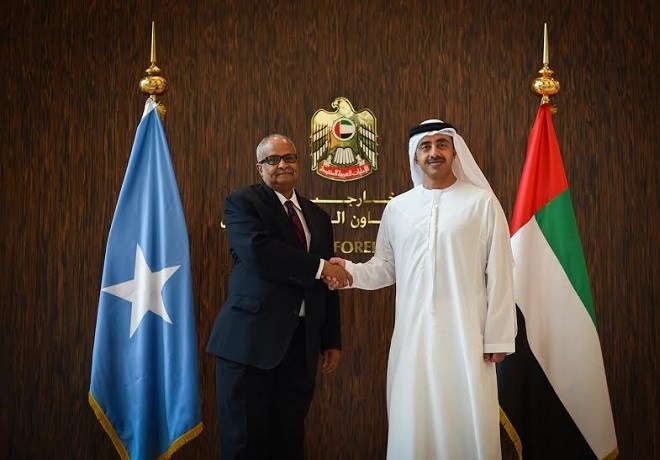 Khamiis, Abriil 28, 2016 (HOL) — Wasiirka Arrimaha Dibadda Somalia, C/salaan Cumar Hadliye oo booqsho ku joogay Maalmahaan waddanka Isu-tagga Imaaraadka Carabta, ayaa la Kulmay Wasiirka Arrimaha Dibadda ee Imaaraadka Carbta, Sheikh Abadalla Bin Zayid Al Nahyan.