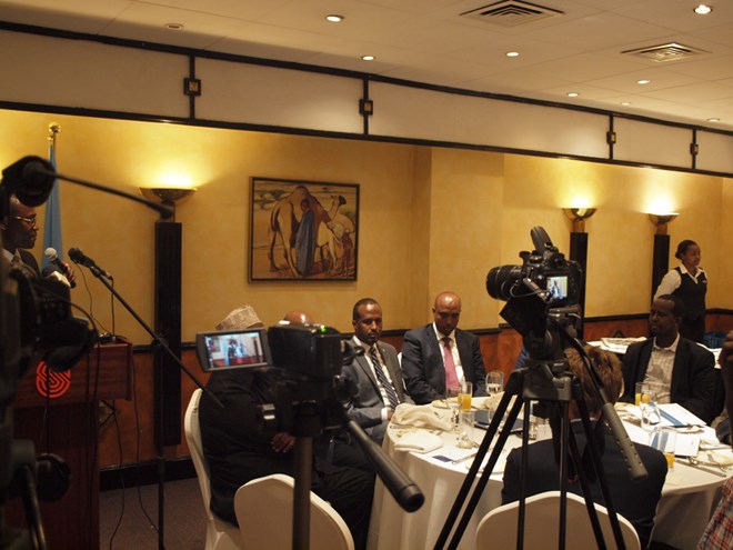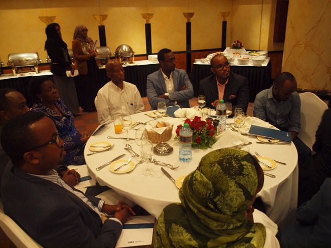 Nayroobi, Abriil 6, 2016 – Safaaradda Xukuumadda Federaalka ah ee Jamhuuriyadda Soomaaliya- Nayroobi waxa ay xalay marti-gelisay casho-sharafeed looga hadlayey caqabadaha hor-yaalla iyo fursadaha ka jira maal-gashiga ganacsatada gaarka ah ee Soomaaliya.