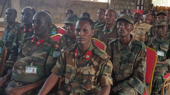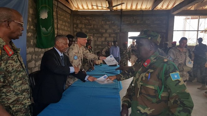 Ugu dambeyntii, Xafladda Xiritaanka Tababarka - ayaa waxaa goobjoog ka ahaa; Taliyaha Hoggaanka Tababarrada Ciidamada Xoogga Soomaaliya, Jen. C/llaahi Cali Caanood, Taliye ku xigeenka Ciidanka AMISOM iyo Saraakiisha Midowga Yurub ee tababara ciidamada millateriga Somalia.