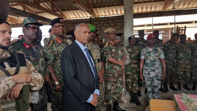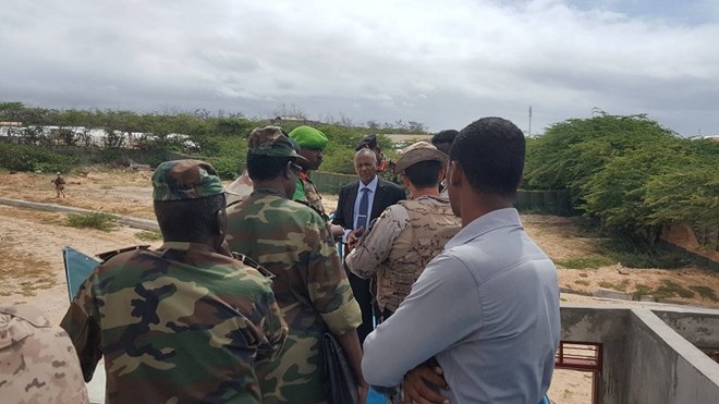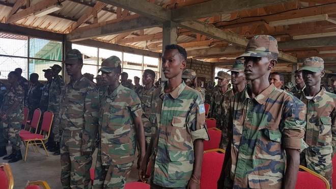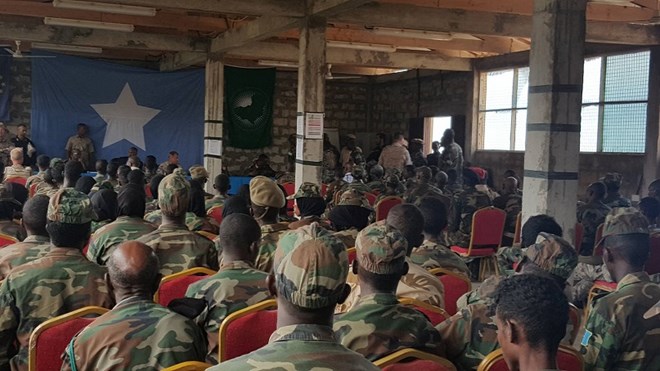 Sabti, August 13, 2016 (HOL) — Wasiirka Gaashaandhigga Somalia, Jen. C/qaadir Sheekh Cali Diini, ayaa Maanta Tababbar ugu soo xiray Xerada Jazeera Ciidammo isugu jiray Saraakiil, Saraakiil xigeen, booliis, Dableyda iyo Injineerro, kuwaasoo Tababarkani u socday Shan bilood ah, Waxaana bixinayay saraakiil ka tirsan Midowga Yurub.