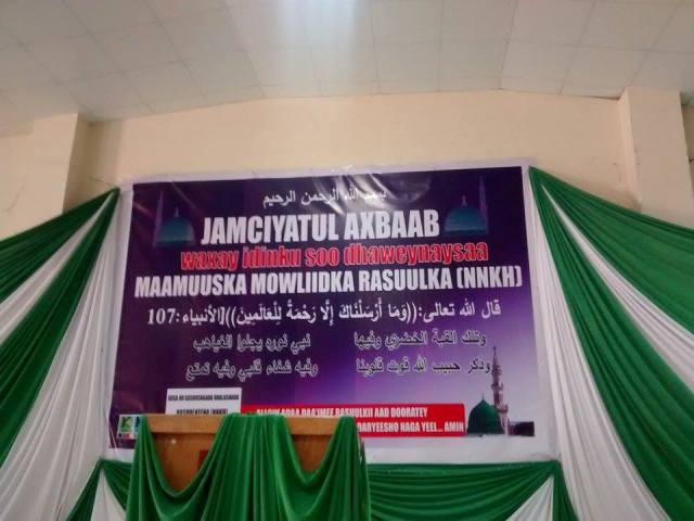 Xuskan oo Haweenka gaar u ahayd ayaa waxaa isugu yimid Boqolaal Dumar ah, kuwaasoo si weyn u xusayey xuska dhalashada Nenigeenna Suuban ee Muxamed NNKH, waxaana soo qaban qaabiyey munaasibaddani jimciyatul Axbaab looguna talo galay in umadda islaamka ah la xasuusiyo maalintani qiimaha ay u leedahay iyo sidii ay u weynayn lahaayeen dhalashada negiga NNKH.