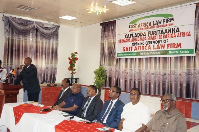 Shirkadan adeega sharciga bariga Afrika“ East Africa Law-firm firm” ayaa lagu qabtay Hotelka-Ambassador ee Hargeysa, waxaana munaasibadan ka soo qaybgallaya bahda sharciga iyo garsoorka,Saraakiisha shirkaddan cusub sameeyey, wasaaradda cadaaladda,xeer ilaalinta,gudoomiyaha maxkamadda sare, maxkamadda ciidamada,Booliska,hay’adaha caalamiga ah,Bahda dhaqanka iyo marti sharafkale oo farabadan.