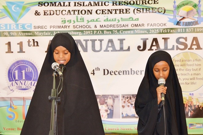Arbaco, December 07, 2016 (HOL) — Munaasabad lagu Maamuusayay Xirtaanka Sannad-dugsiyeedka Iskuulka SIREC iyo Madarasada Cumar Faaruuq ayaa lagu qabtay Magaalada Johannseburg ee dalka Koonfur Afrika, waxaa kasoo qayb-galay bulshada qaybaheeda oo isugu jiray Aqoon-yahanno, Waxgarad, Ganacsatada iyo Waaliddiinta Caruurtoodu at wax ka bartaan Madarasadda iyo Iskuulka.