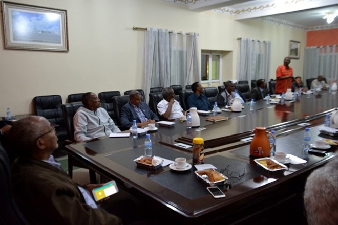 Madaxweynaha oo ay kulankaas ku wehelinayeen wasiirada, Arrimaha Dibeda, Dr. Sacad Cali Shire, Qorshaynta Qaranka Mudane, Cali Salaan Jirde (Cali Shoonbe), Madaxtooyada Mudane, Maxamuud Xaashi Cabdi, Duulista iyo Hawada, Cismaan Cabdilaahi Saxardiid (Cadaani) iyo Arrimaha Gudaha Cali Maxamed Warancade.