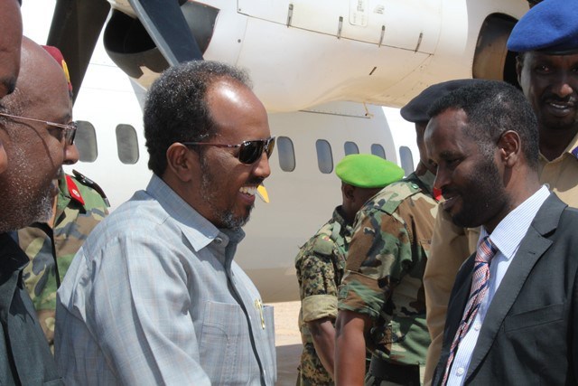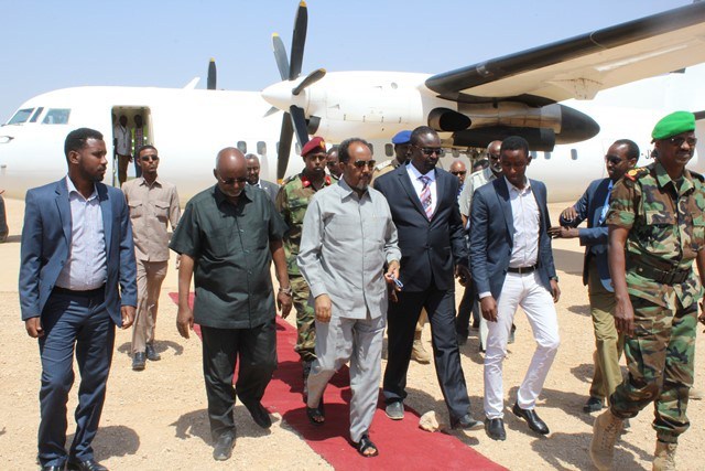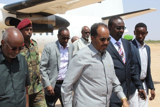 Khamiis, Feberaayo, 18, 2016 (HOL) -- Madaxweynaha dowladda Soomaaliya Xassan Sheekh Max'ed iyo wafdi ka kooban labada golle ee dowladda ayaa barqannimadii maanta gaaray magaalada Beledweyne ee xarunta gobolka Hiiraan.