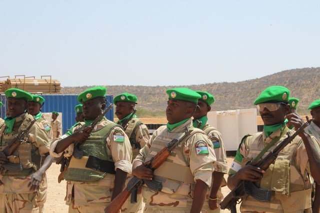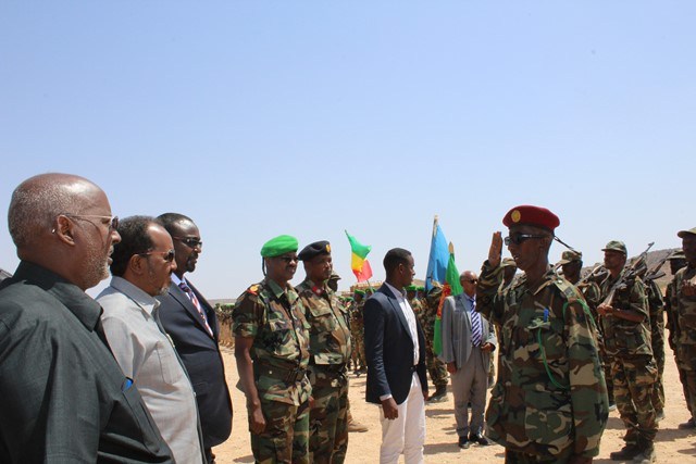 Xassan Ibraahim Qoono, mas'uuliyiinta maamulka heer gobol iyo degmo oo uu horkacayo guddoomiyaha gobolka Yuusuf Axmed Hagar, saraakiisha ciidammada dowladda iyo kuwa howlgalka midowga Africa AMISOM.