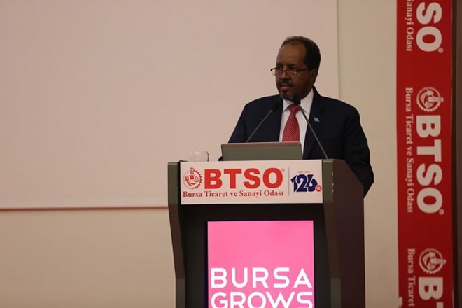 Xasan Sheekh ayaa magaalada Bursa ee Waqooyi-galbeed ee dalka Turkiga oo caan ku ah Warshadaha kula kulmay Rugta Ganacsiga ee Bursa iyo Ganacsatada Turkiga, isagoo kala hadlay fursadaha ay ka heli karaan Somalia, xilligana uu dalku ku jiro dib u dhis iyo dib u soo kabasho.