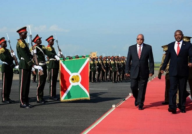 Jacob Zuma ayaa Hadalkaan ka sheegay Garoonka Diyaaradaha Bujumbura oo ay isaga iyo mas'uuliyiin ka socda dalalka Afrika ka dhoofayeen, kuwaasoo maalmahan u joogay Dalka Burundi sidii ay Xukuumadda iyo Kooxaha Mucaaradka ah uga Dhaadhicin lahaayeen inay wadahadallo ku xalliyaan khliaafka siyaasadeed ee u dhexeeya.