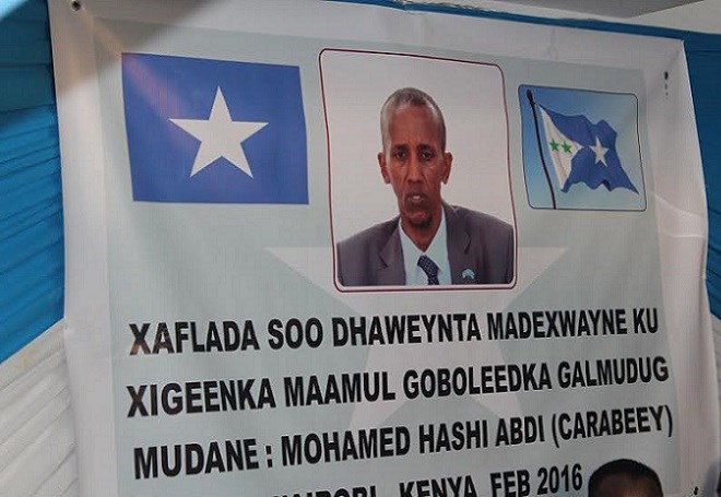 Arbaco, Feberaayo 03, 2016 (HOL) — Madaxweyne ku Xigeenka Maamulka Galmudug, Maxamed Xaashi Cabdi (Carabeey) oo safar ku joogo wadanka Kenya, ayaa xalay ka qeyb galay xaflad soo dhaweyn aheyd oo loogu sameyay xaafada Eastleigh (Islii) ee magaalada Nairobi.