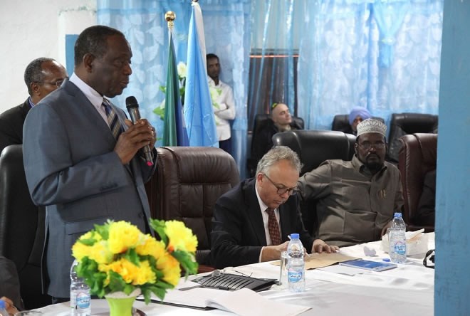 Sabti, Feberaayo 06, 2016 (HOL) — Wakiilka Midowga Afrika ee Arrimaha Soomaaliya, Danjire Francisco Caetano Jose Madeira ayaa khamiistii booqashadiisii ugu horreysay ku tagay magaalada Kismaayo ee gobolka Jubbada Hoose, isagoo la kulmay Madaxweynaha maamulka Jubbaland, Axmed Maxamed Islaam [Axmed Madoobe].