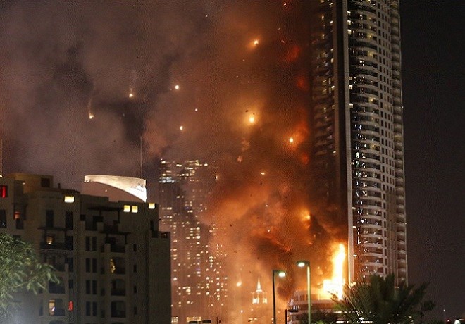Jimco, Janaayo 01, 2016 (HOL) — Hoteel kuwa raaxada ah oo ku yaalla magaalada Dubai ee dalka Isu-tagga Imaaraadka Carabta ayaa weli waxaa ka baxaya qiiq fara adan, waxaana dabku uu kacay xilli fiidnimadii xalay la isku diyaariyay oo dhaweynta bilashada Sannadka cusub ee 2016-ka.