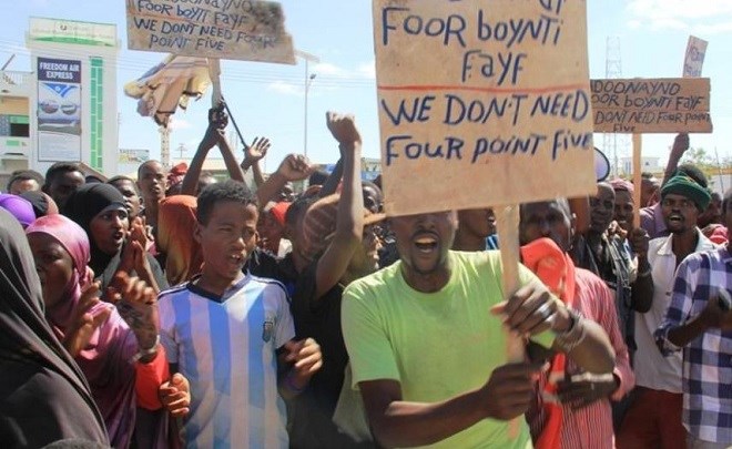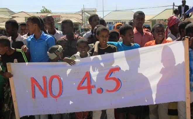 “Ma aqbalayno in wax lagu soo doorto 4.5, Waana taageersan nahay Madaxweyne C/weli Gaas oo kazoo horjeestay go’aankaas, waayo ma ahan wixii ay Shacabka Reer Puntland ay u wakiisheen inuu u soo qaado,” ayay tiri haweeney ka mid ahayd dadkii bannnaan-bixii ka dhacay Garoowe ka qayb-qaadanaysay.