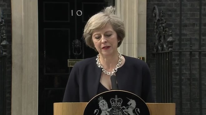 Waxay ka hadashay baahida loo qabo in uu midoobo xisbiga Conservative-ka ka dib aftidii uu dalkaasi u qaaday Midowga Yurub. Iyadoo ugu dambeynna xustay inay Dadka Britain ugu Adeegi doonto si ay ku jirto Cadaalad iyo Sinnaan.