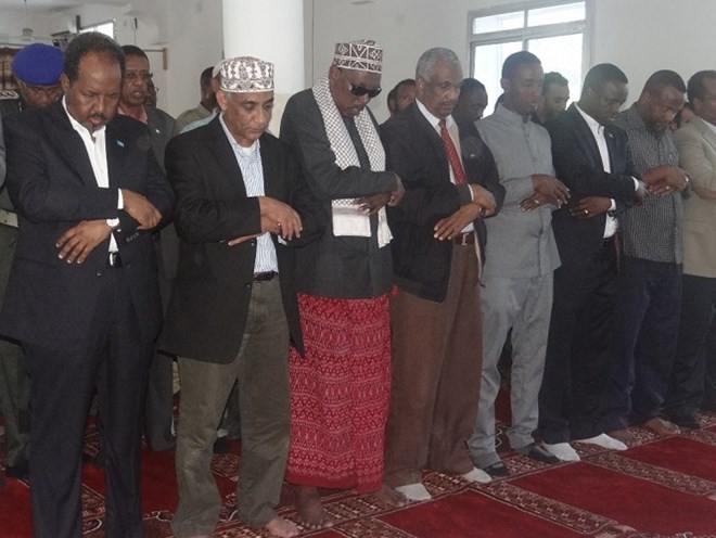 Talaado, Juun 28, 2016 (HOL) — Madaxweynaha Soomaaliya, Xasan Sheekh Maxamuud, ayaa maanta ka Qayb-galay Tukashada Salaadda Jannaasada ee Burci Maxamed Xamza oo dhawaan ku shahiiday Weerarkii ay Al-shabaab ku qaaday Hoteelka Naasa Hablood.