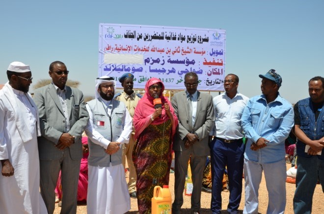 Agaasimaha Hay'adda Zamzam, Shuceyb Cabdiladhiif Sh. Bashiir, ayaa wafdiga ka socday hay'adda Raf ee Qatar iyo madax ka socotay Somaliland oo wasiirrada maaliyada, Zamzam Cabdi Aadan iyo Wasiirka Qorsheynta, Cali Shoombe ay ka mid ahaayeen oo ay ku jireen culummo ayaa gaarsiiyay deeqdan dadka abaartu ay saameeyeen ee ku dhaqan deegaanka Balliga-cas iyo deegaannada ku dhow - raashin gargaar ah oo ka koobanaa; Bariis, Sonkor, Saliid iyo Caano.
