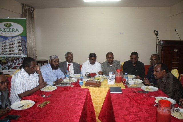 Khamiis, May 12, 2016 (HOL) — Kulan ay ka qayb-galeen taliyaha Hoggaanka Socdaalka iyo Jinsiyadaha Somalia, Jen. C/llaahi Gaafoow Maxamuud, Guddoomiyaha Baarlamaanka Maamul-goboleedka Galmudug, Cali Gacal Casir, Wasiiro iyo Xildhibaanno Galmudug ka tirsan, Nabadoon Max'ed Xasan Xaad, Ganacsato iyo Xubno kale ayaa Maanta lagu qabtay Muqdisho.