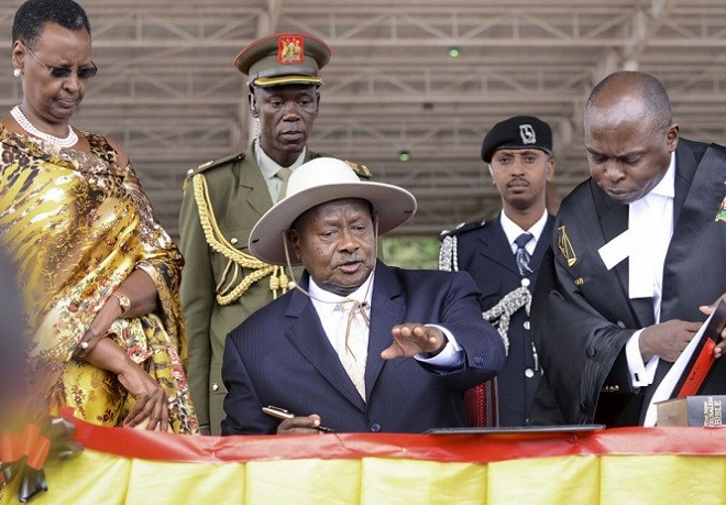 Xaflada caleema-saarka Museveni oo ka dhacday fagaaraha Kololo ee bartamaha Kampala, ayaa waxaa sidoo kale goob-joog ka ahaa’ Cumar Xasan Madaxweynaha Suudaan, Cumar Xasan Axmed Al-Bashiir, Madaxweynaha Chad, isla marakana ah gudoomiyaha Sanadkan ee Ururka Midowga Afrika, Idriss Déby Itno, Madaxweynaha dalka Koonfur Afrika, Jacob Zuma, Madaxweynaha Zimbabwe, Robert Mugabe, RW Itoobiya, Haile-mariam Desalegn, Madaxweynaha Tanzania, John Pombe Magufuli, Madaxweynaha Kenya, Uhuru Kenyatta iyo hoggaamiyeyaal kale oo Afrika iyo Caalamka kaleba ka socday.
