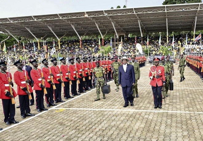 Ugu dambeyn, Musaasabada ayaa waxaa khudbad ku aaddan horumarka Dalka Uganda iyo doorka u dalkaasi ku leeyahay Qaaradda Afrika ka jeediyay Madaxweynaha lagu dhaariyay Xafladdaas Yoweri Museveni, iyadoo Ciidamada kala duwan ee Uganda ay halkaasi kusoo bandhigeen dhoolla-tus lagu maamusayo caleemo-saarka.