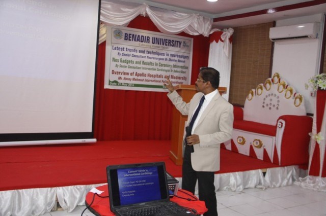 Axad, May 22, 2016 (HOL) — Dhaqaatiir ka socotay Isbitaalka takhasusiga ah ee Apollo Speciality Hospital oo ku yaala magaalada Chennai ee dalka India, maalmahana booqasho ku joogay Muqdisho ayaa seminaar u qabtay qaar ka mid ah ardayda Jaamacada Banaadir.