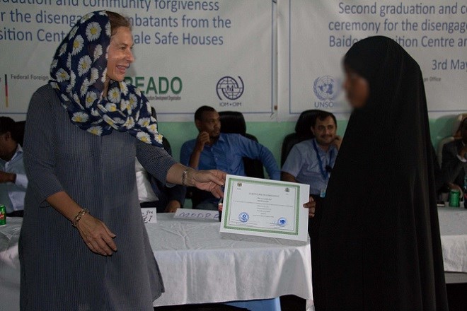 Sanduuqa Hawl-galka Qaramada Midoobey ee Taakuleynta Somalia, UNSOM ayaa gacan ka geystay taabo-galinta hoy-nabdoon oo loogu talo-galay in lagu dhaqan-celiyo Haweenka horay uga tirsanaa Al-shabaab oo laga Hir-geliyey Baydhaba.