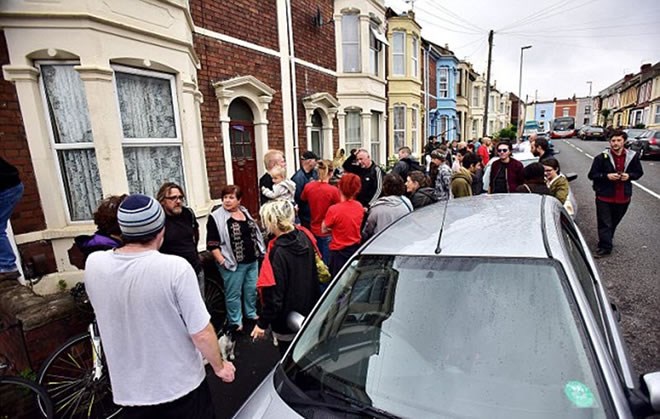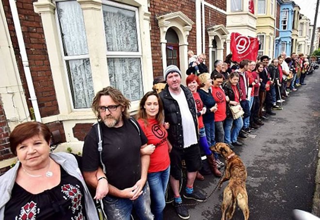 Arintan waxaa ka war helay ururka ACORN oo u dooda xaquuqda dadka ku nool guryaha kirada ee magaalada Bristol,taasoo maalintii ay maxkamada guriga ka saari lahayd ay ka hortageen 30 qof oo ahaa deriska Naciima oo gebi ahaan aqalkooda si silsilad ah isugu wareejiyay.