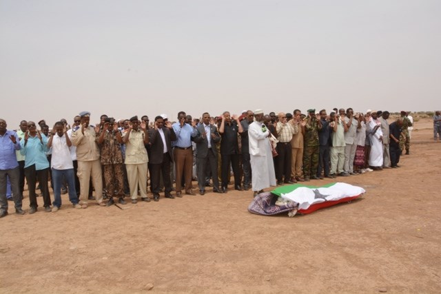 Marxuumka oo lagu aasay Xabaalaha Masallaha ee Koonfurta Caasimada ayaa waxa kale oo xaadir ku ahaa Mas'uuliyiinta Safaaradda Ingiriiska ee Itoobiya oo ay Hoggaaminaysay, Ms. Lissie Lovett oo ah xoghayaha labaad ee safaaradaasi, Waxaana lagu Tukaday Meyd Marxuumka oo lagu shaqlay Calanka Somaliland hareerahana ay hayeen cutubyo ka tirsan ciidamada Qaranka Somaliland. Waxaa Salaadda janaasada tukiyey wasiirka diinta iyo awqaafta sheikh Khaliil Cabdilaahi Axmed.