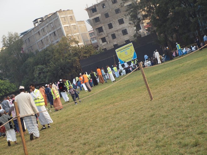 Garoonkaa oo aad u weyn ayaa dadkii ay buux dhaafiyeen. Takbiirta, saliga Nabiga (scw) iyo ducooyinka ayaan kala go' lahayn min bilow ilaa dhammaad ayadoo mashaaikh badan ay halkaa ka duceeyeen khudbadana ay kasoo jeediyeen.
