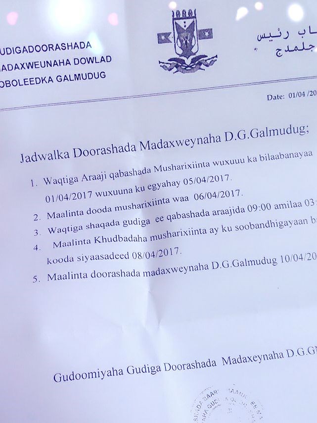 Sabti, April 1, 2017 (HOL) –Afhayeenka maamulka Galmudug Cabdullahi Xaashi Roob da’ay, oo wareysi kooban siiyay Hiiraan Online, ayaa sheegay in maamulka Galmudug uu ku dhawaaqay jadwalka Doorashadda madaxweynaha.