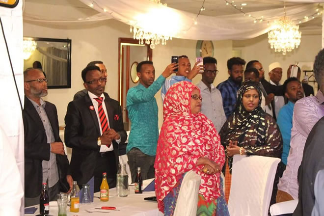 Axad, Augusto 13, 2017 (HOL) Jaaliyadda Soomaaliyeed ee magaalada Stockholm, caasimadda dalka Sweden, ayaa xaflad casho sharaf ah oo soo dhaweyn ah waxa ay xalay ugu sameysay maqaayadda weyn ee Juba Restuarant Agaasimaha Hey’adda Socdaalka iyo Jinsiyadda ee dowladda Soomaaliya Maxamed Aadan (Koofi) iyo Cali Cabdi Wardheere (Cali Yare) oo ka howl-gala xafiiska madaxweynaha Soomaaliya.