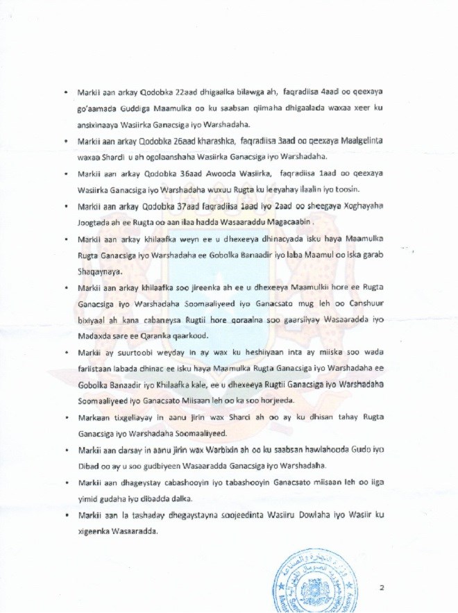 Wasaarada ayaa sheegtay in iyada oo lagu dhaqmayo xeerka ganacsiga ee 1985tii la isugu yeero dhamaan rugaha ganacsiga Soomaaliyeed.