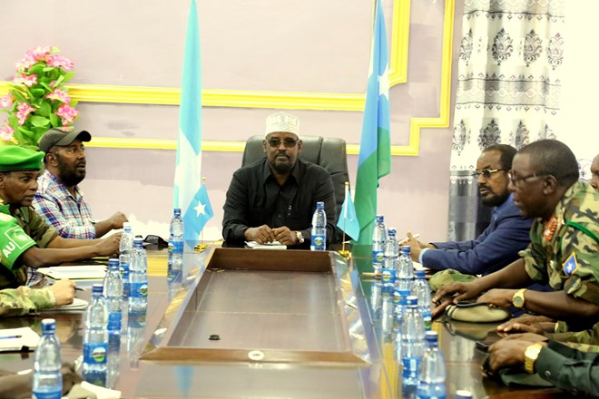 Khamiis, Augusto, 03, 2017 (HOL): Madaxweynaha Jubaland Mudane Axmed Max’ed Islaam ayaa guriga martida ee magaalada Kismaayo maanta kulan gaar ah kula qaatay madaxa howlgalka ciidamada Mareeykanka ee Afrika (AFRICOM) Gen. David J.Fumess.
