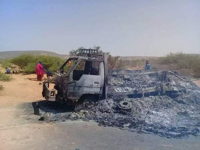 Hadaba Sawirro laga soo qaaday gadiidka ayaa muujinaya sida ay u basbeelleen gaadiidka la gubay iyo dhamaanba wixii hanti ahaa ee saarnaa dushooda.