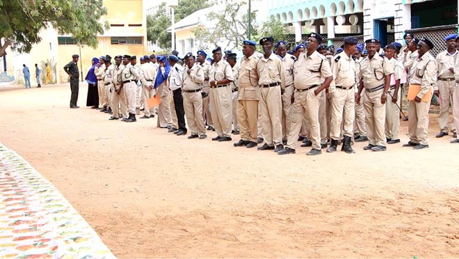 Axad, Feberaayo, 19, 2017 (HOL) –Taliyaha booliiska Soomaaliya Jeneraal Maxamed Sh. Xasan Xaamud, ayaa manta tababar magaaladda muqdisho uga furay saraakiil xigeeno gaaraya 80, kuwaasoo sanadihii la soo u dallacay Darajada Sarkaal ee Xiddigle.