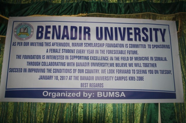 Manaar oo ka mid ah aqoonyahanada qurba joogta ah ee wax ku soo bartay dalka Britain ayaa waxay gacanta ku heysaa xarun lagu daryeelo agoonta oo ay ku jiraan ku dhowaad boqol caruur ah, waxaana xafladaas lagaga dhawaaqay in Manaar ay deeq waxbarasho (Scholarship) siineyso sanad dugsiyeedka soo socda gabar ka soo jeeda qoys danyar ah oo wax ka baran doonta kuliyada Dhaqtarnimada ee Jaamacada Banaadir.