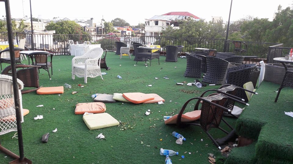 Sawirro laga soo qaaday maqaayada ayaa muujinaya in xiliga weerarka lagu qaaday maqaayada halkaa ka cunteynayeen dad u badnaa shacab, waxaana daadsan dhamaanba gudaha maqaaxida kuraastii ay dadka ku fadhiyeen raashi fudud iyo cabitaanno kala duwan.