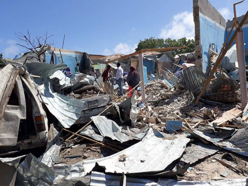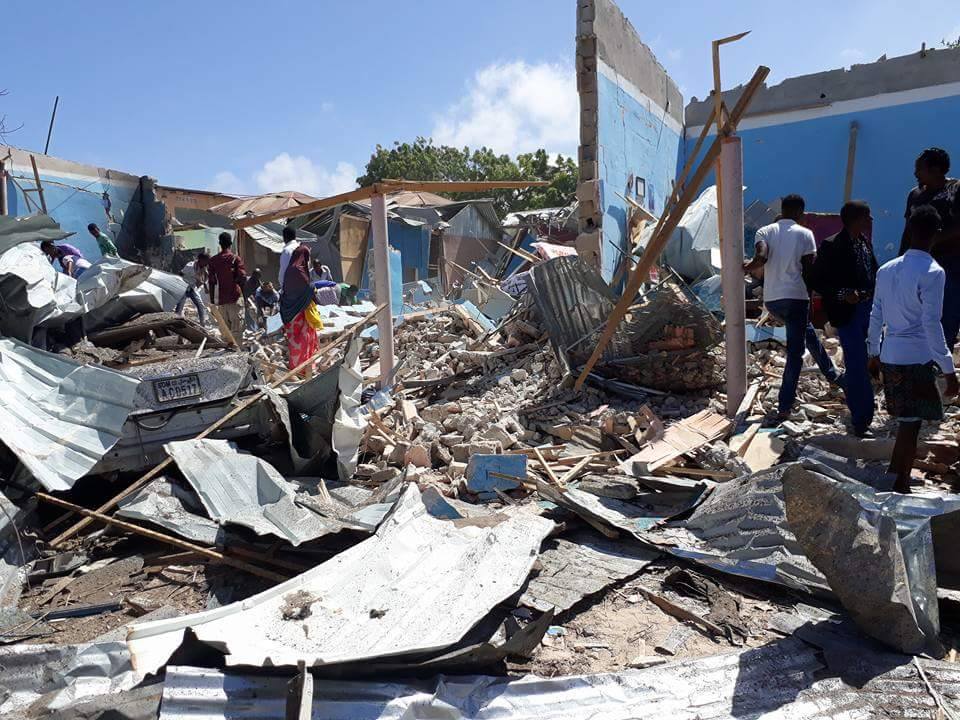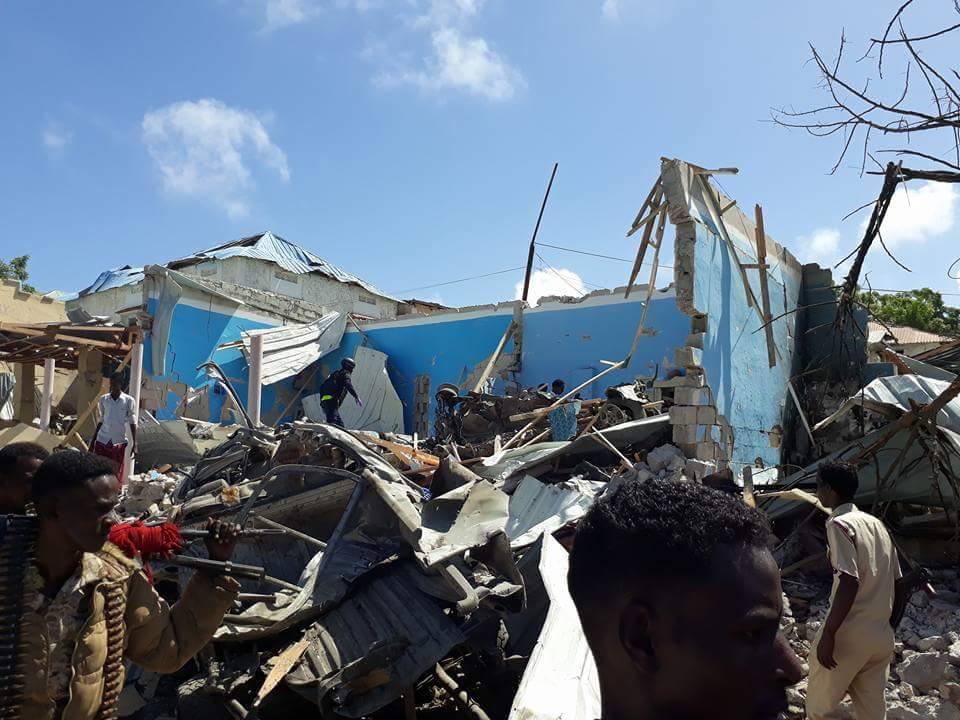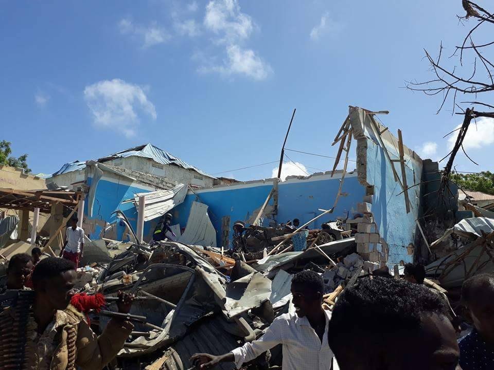 Waxaa halka uu qaraxa ka dhacay ku sugan ciidamada amniga dowladda Soomaaliya oo xiray dhamaanba jidadka soo gala goobta uu qaraxa ka dhacay, waxaana jira meydad wali laga soo saarayo dhismayaasha bur buray hoostooda.