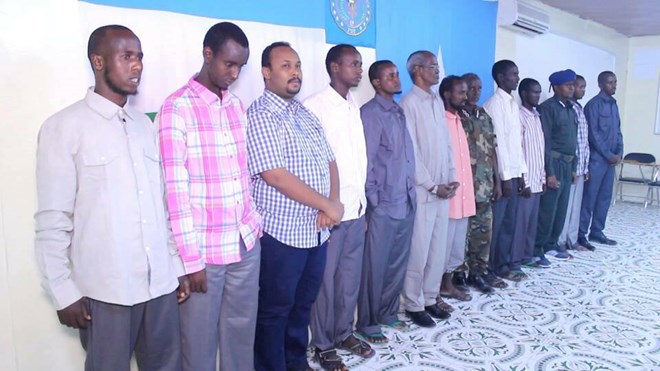 Talaado, June., 20, 2017 (HOL) –Maamulka Puntland ayaa maanta magaalada Bosaso ku soo bandhigay rag ka soo goostay Daacish oo dhawaan isku soo dhiibay ciidamada Puntland ee fadhigoodu yahay Buuraha Cal-Bari ee gobolka Bari.