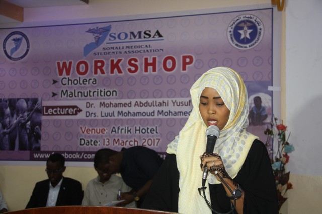 Talaado, Maarso, 14. 2017 (HOL) - Tababar maalin socday oo ku saabsan barashada cudurada ka dhasha abaaraha sida Daacuunka (Cholera) iyo nafaqo darada (Mal-nutrition) ayaa shalay lagu qabtay magaalada Muqdisho, waxaana ka faa’iideystay boqolaal ka mid ah ardayda wax barata kuliyadaha Caafimaadka ee Jaamacadaha dalka.
