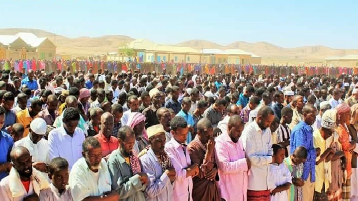 Khamiis, Maarso, 16, 2017 (HOL) - Dad kumanaan gaadhaya ayaa isugu soo baxay garoonka Masalaha Ciida oo ku yaala koonfurta magaalada Laascaanood ayaa lagu baryayey in Illaahay cirka roob uga darooriyo waqti kumanaan qoys ay haatan xoryo qaxooti ka degeen meelo badan oo ka mid ah gobolka Sool.