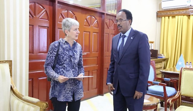 Madaxweynaha Soomaaliya, Mudane Maxamed Cabdullaahi Farmaajo iyo Safiirka Jermalka u qaabilsan dalalka Soomaaliya iyo Kenya Ambassador Jutta Frasch, ayaa ka wada hadlay sidii dib loogu soo nooleyn lahaa xiriirkii Taariikhiga ahaa ee labada dal.