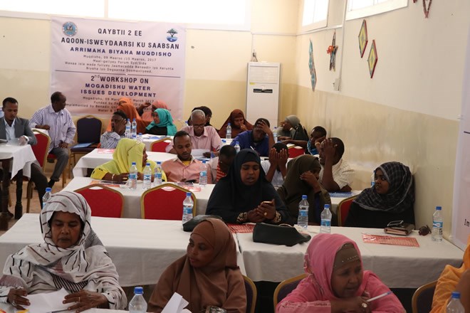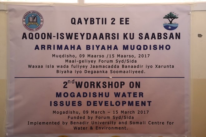 Khamiis, Maarso 9, 2017 (HOL) — Aqoon-isweydaarsi looga hadlaayey arrimaha biyaha magaalada Muqdisho ayaa maanta ka furmay Hoteelka Giyaajo ee magaalada Muqdisho. Aqoon-isweydaarsigaas waxaa iska kaashaday Jaamacadda Banaadir iyo Xarunta biyaha iyo deegaanka Soomaaliyeed ee ka dhisan magaalada Stockholm, dalka Sweden. Aqoon-isweydaarsigaas oo socon doona muddo dhowr maalmood ah waxaa maalgelisay hey’adda Forum Syd ee dalka Sweden. Waxaana ka soo qeyb galay masuuliyiin iyo howl-wadeenno kala duwan oo rag iyo dumar leh oo ka socda hey’ado kala duwan, oo isugu jira kuwa dowladda, maamulka magaalada Muqdisho, ururada bulshada, jaamacadaha, shirkada ceelasha iyo weliba firxadlayaal badan oo aqoon iyo waayo aragnimo u leh arrimaha biyaha.